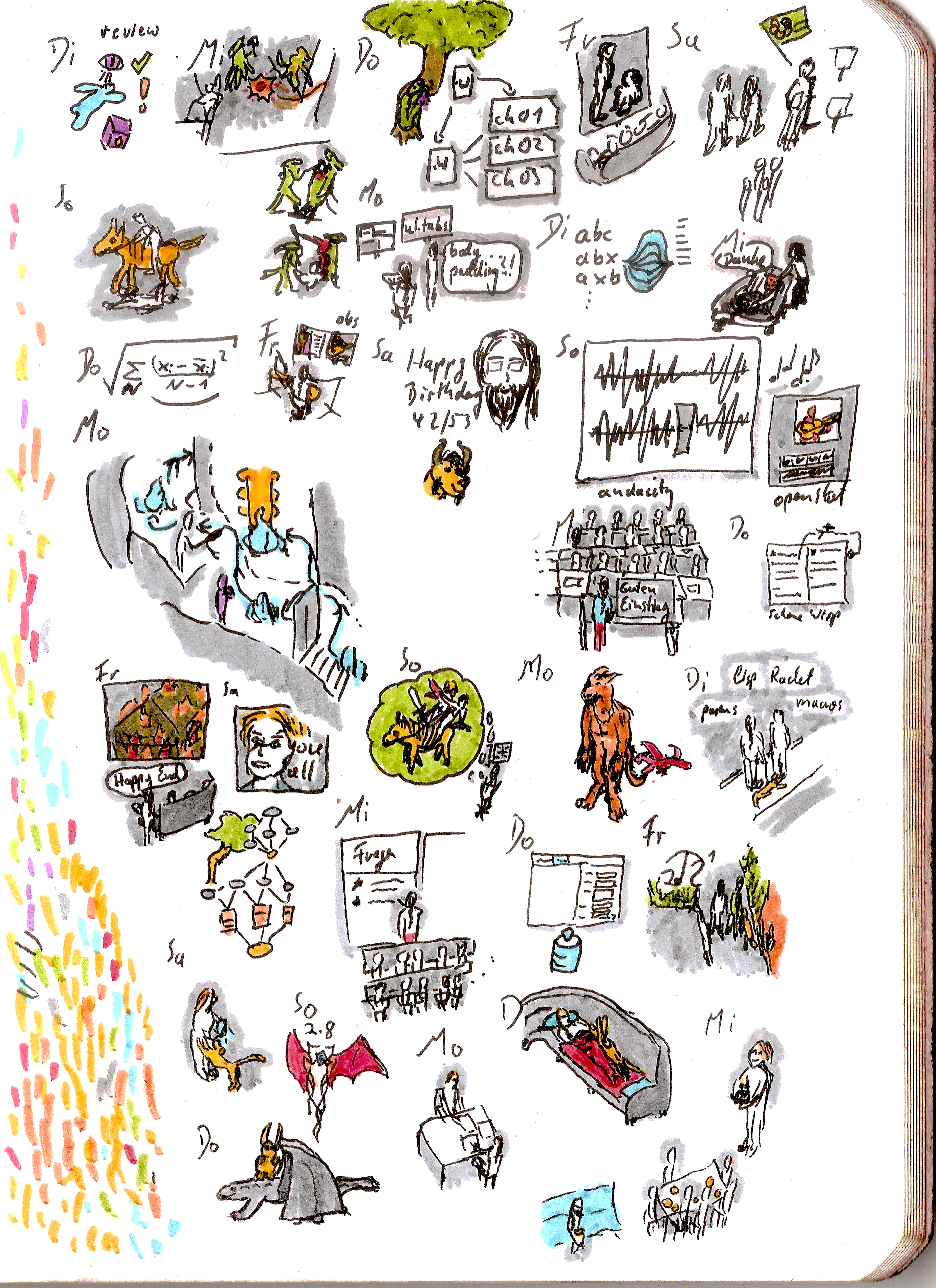 When Sacha Chua created her awesome sketchnotes I became fascinated with this way of visualizing understanding, and when later Asher Wolf wrote daily “Tell me your best thing today” (e.g. 2020-09-20) I started to sketch the best event from yesterday every morning.