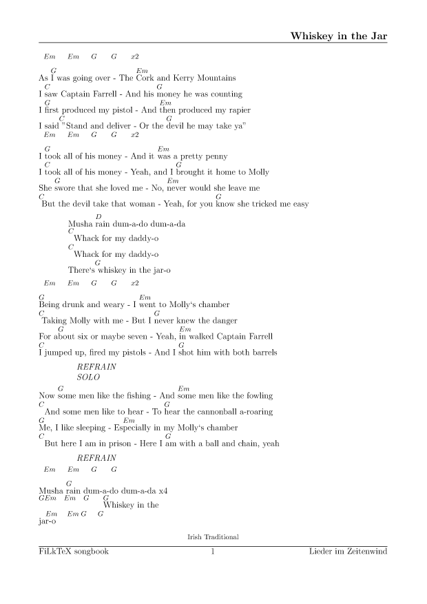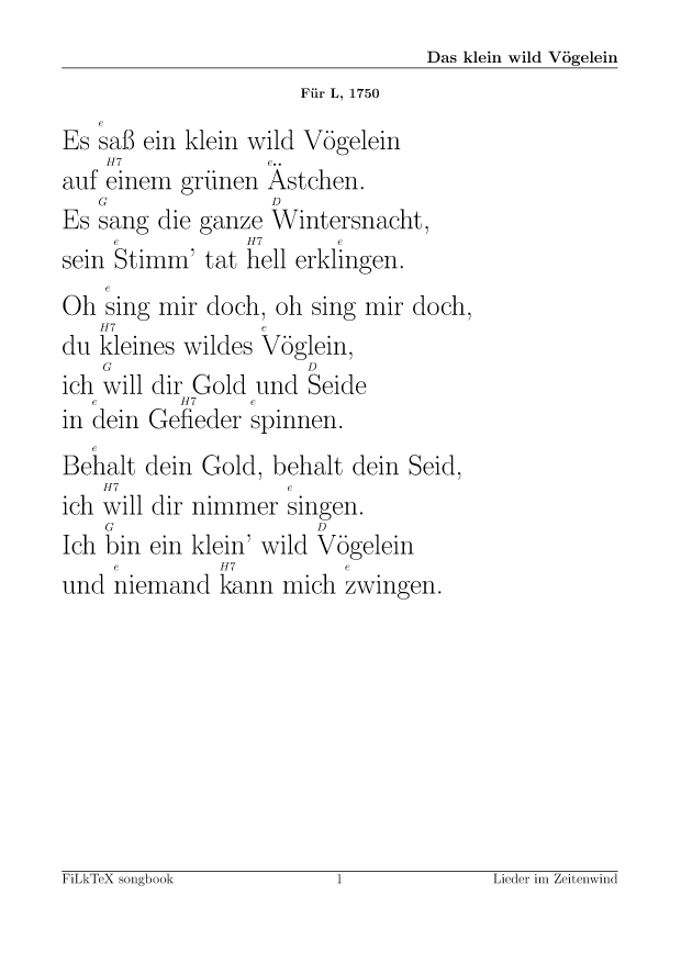 Anders als auf meiner alten Seite will ich die Lieder hier leichter nutzbar (und direkt druckbar) machen. Für alle Lieder hier gibt es die Quellen in meinem FilkTex Liederbuch Repository. Wenn ich keinen Namen dazuschreibe, ist das Lied von mir.